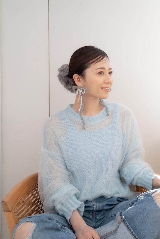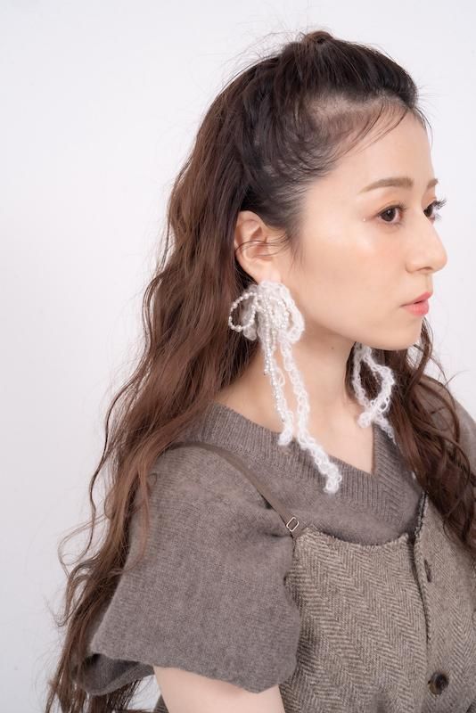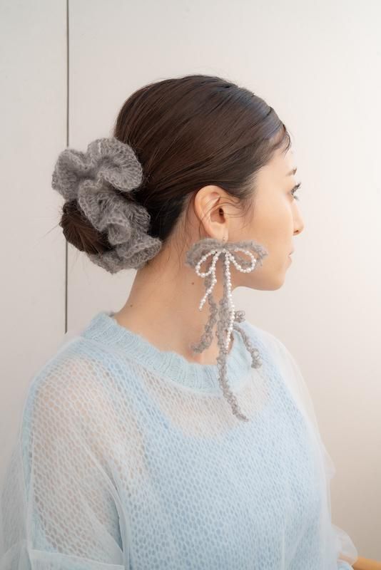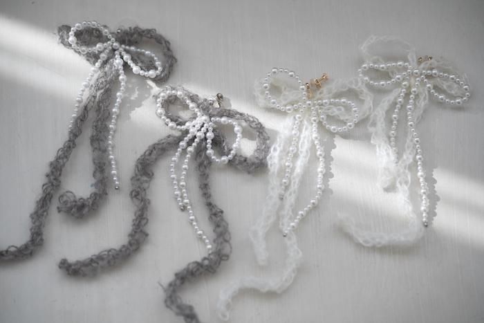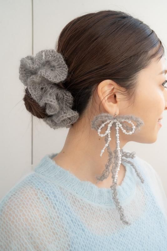 再販【黒坂優香子さん x CHACO】モヘアリボンピアスorイヤリング ペア販売 (WH/GY)