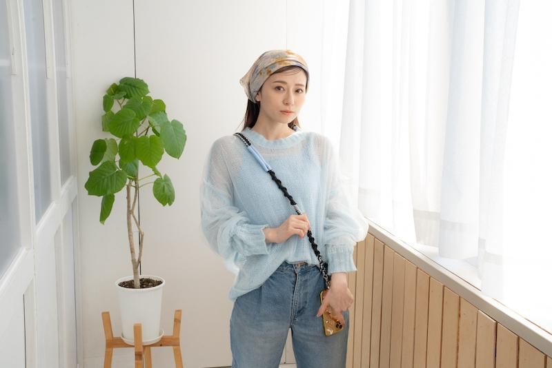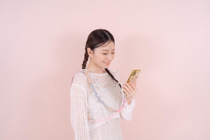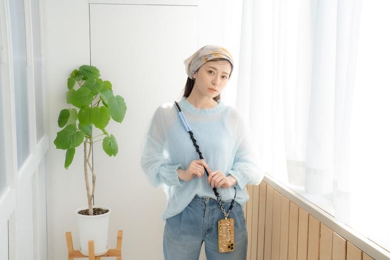 優香子さんの選んだカラーで作製したスマホショルダー。