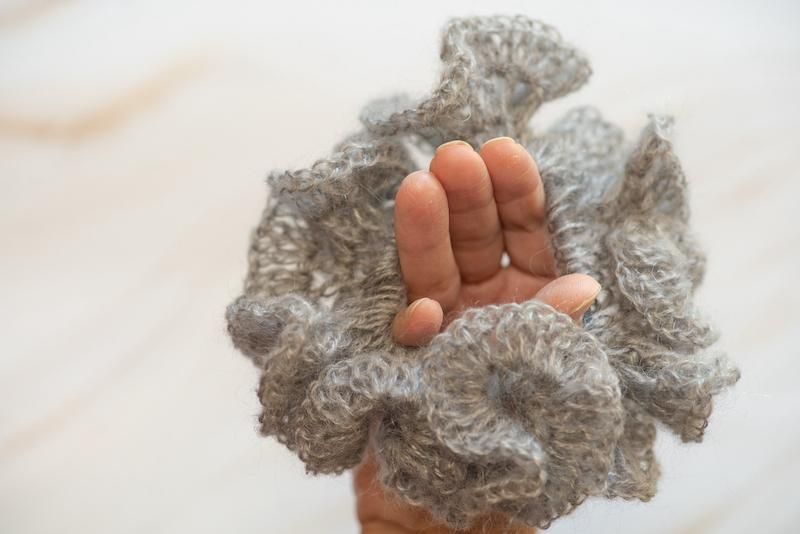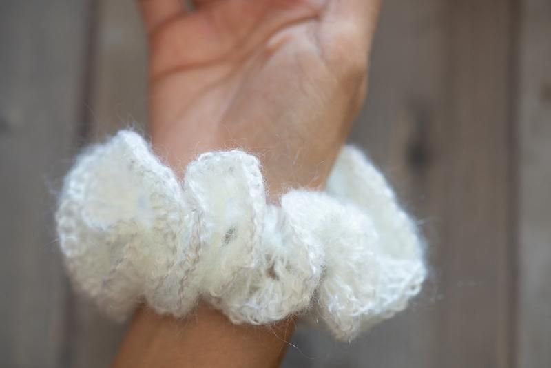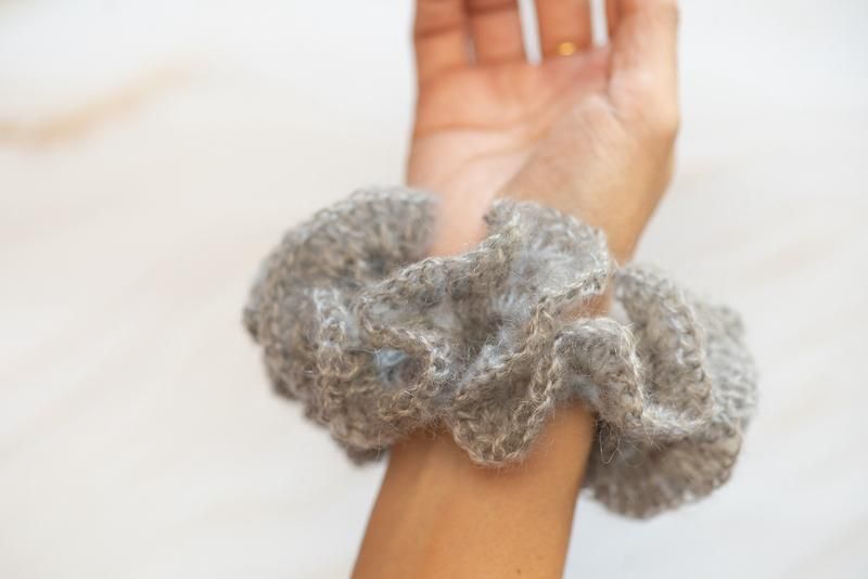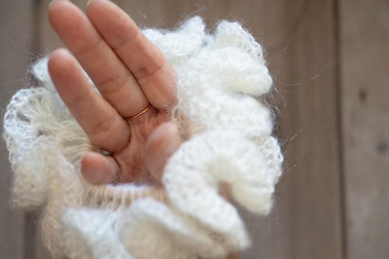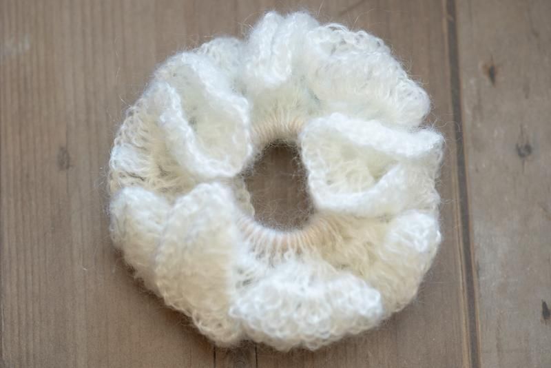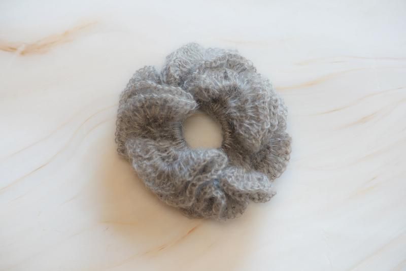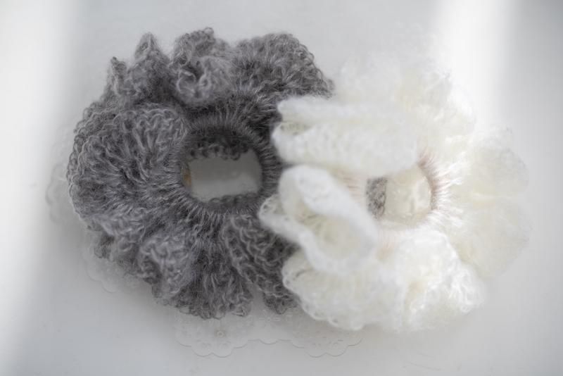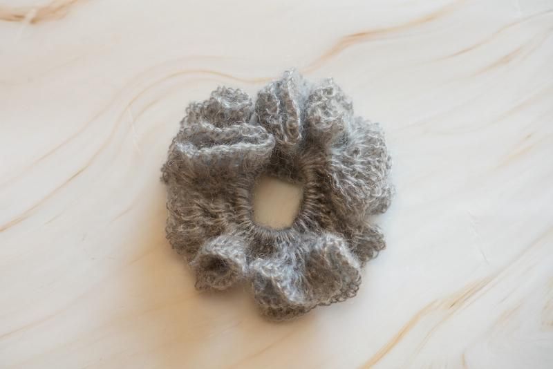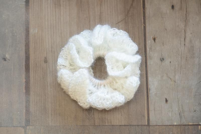 モヘアの色からこだわって出来上がったモヘアシュシュ。