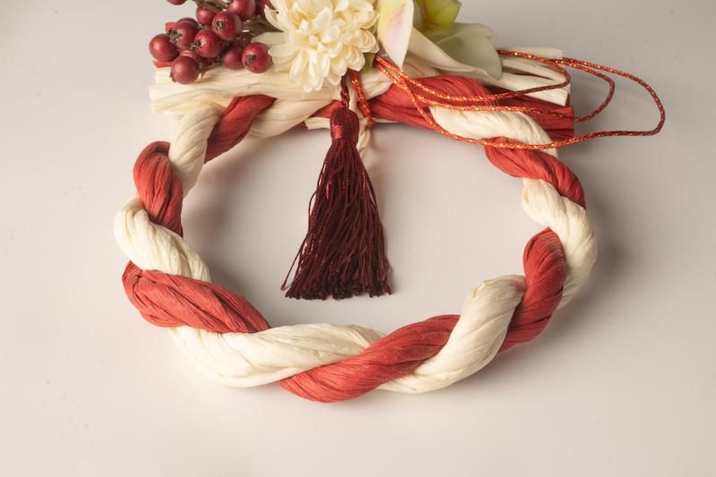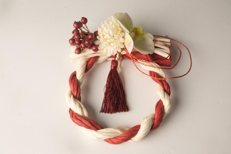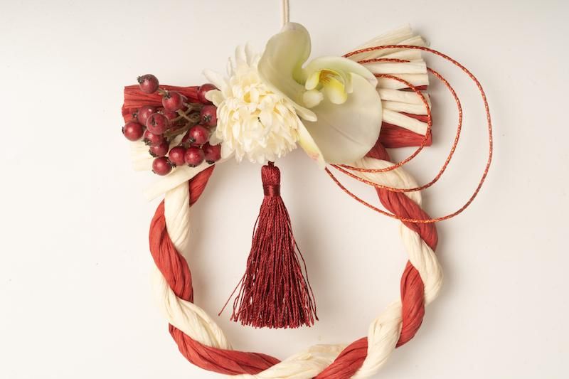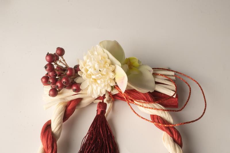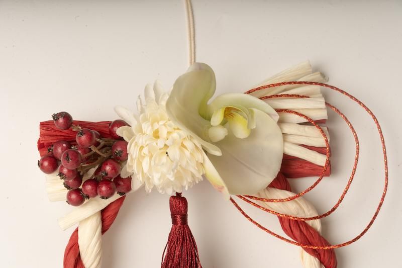 【お正月飾り】紅白しめ縄とお花のお飾り 002
